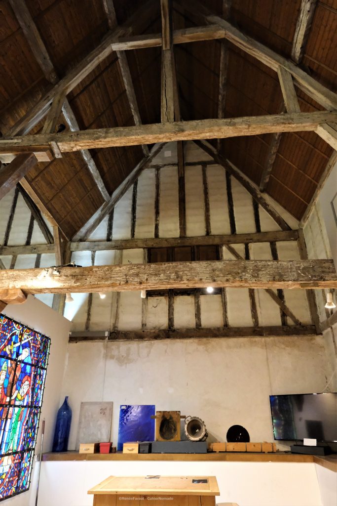 Le bâtiment qui abrite le centre est assez étonnant. On a l’impression d’entrer dans une maison à colombages, mais la façade à 3 pignons cache en fait une ancienne grange aux dîmes ainsi qu’un cellier. Ici, les chanoines conservaient autrefois les denrées prélevées dans le cadre de l’impôt sur les récoltes : des graines et du vin. Dans le grenier, on peut voir une impressionnante charpente dont certaines poutres sont sculptées. Mais la surprise vient du cellier, situé en dessous, composé de trois immenses nefs, de nombreuses croisées d’ogives et de colonnes à chapiteaux.