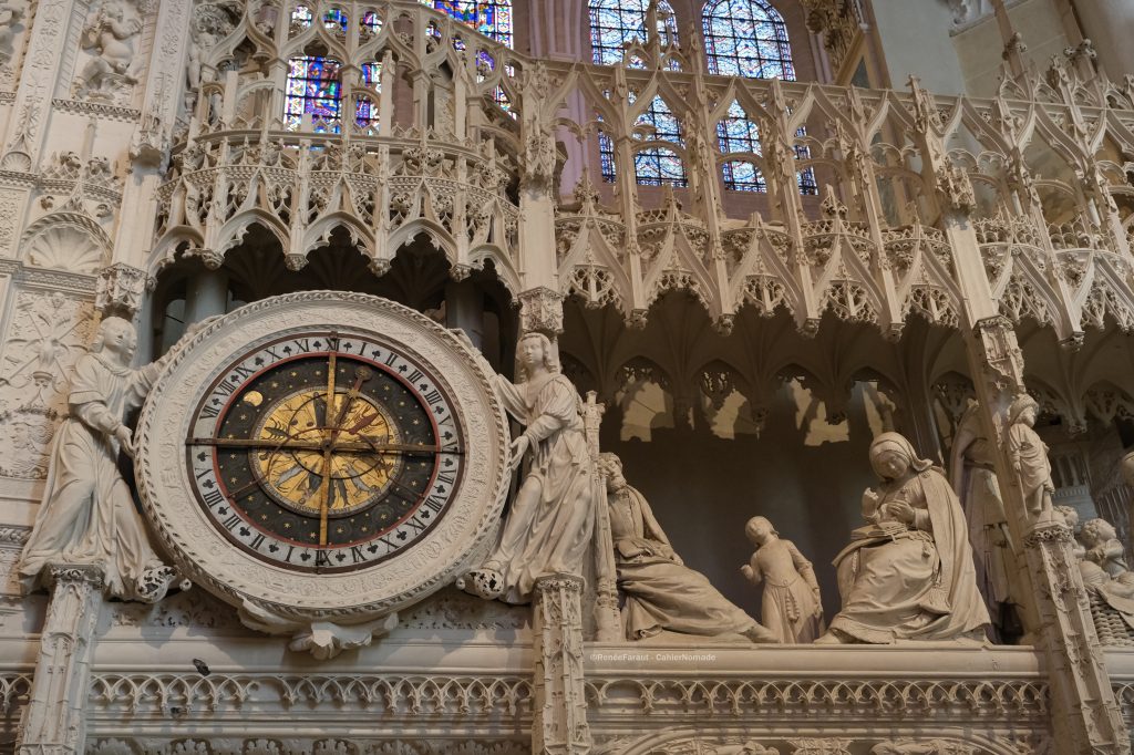 Autre curiosité à découvrir dans cette cathédrale – et à mon sens la plus belle -, la clôture qui entoure le chœur : imaginez un mur en pierre de 6 mètres de haut et de 100 mètres de long orné d’une quarantaine de niches présentant chacune une scène différente de la vie de Marie et de Jésus et coiffées de baldaquins en dentelle de pierre.