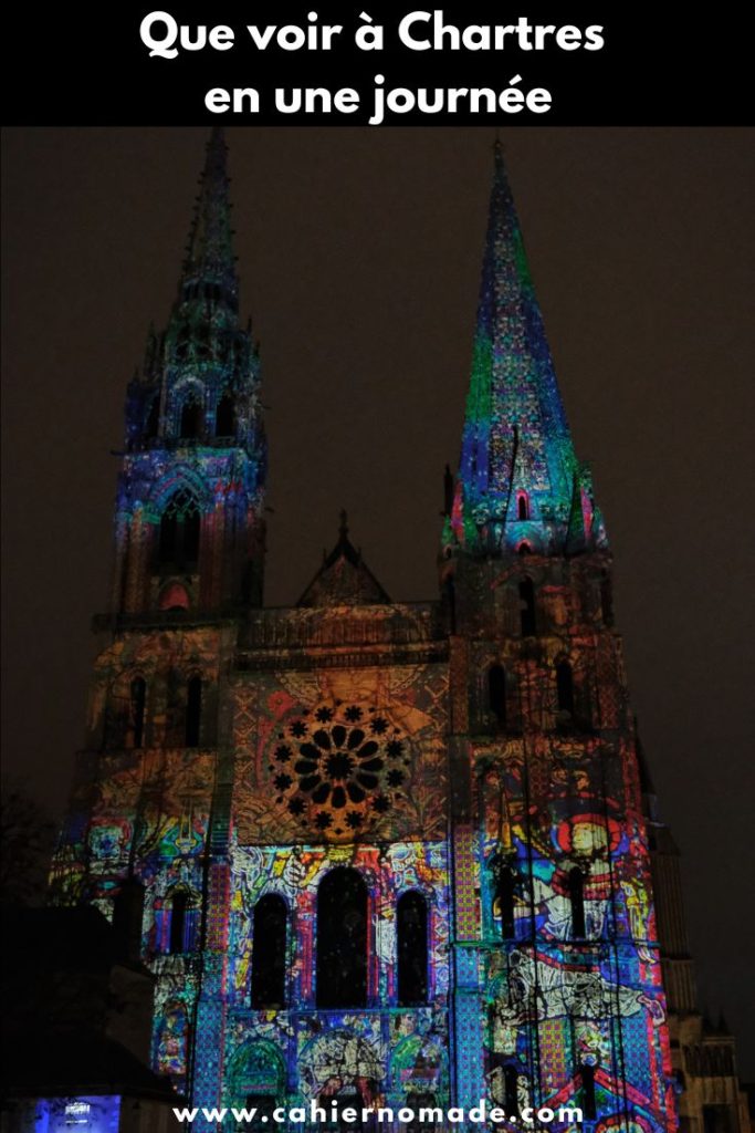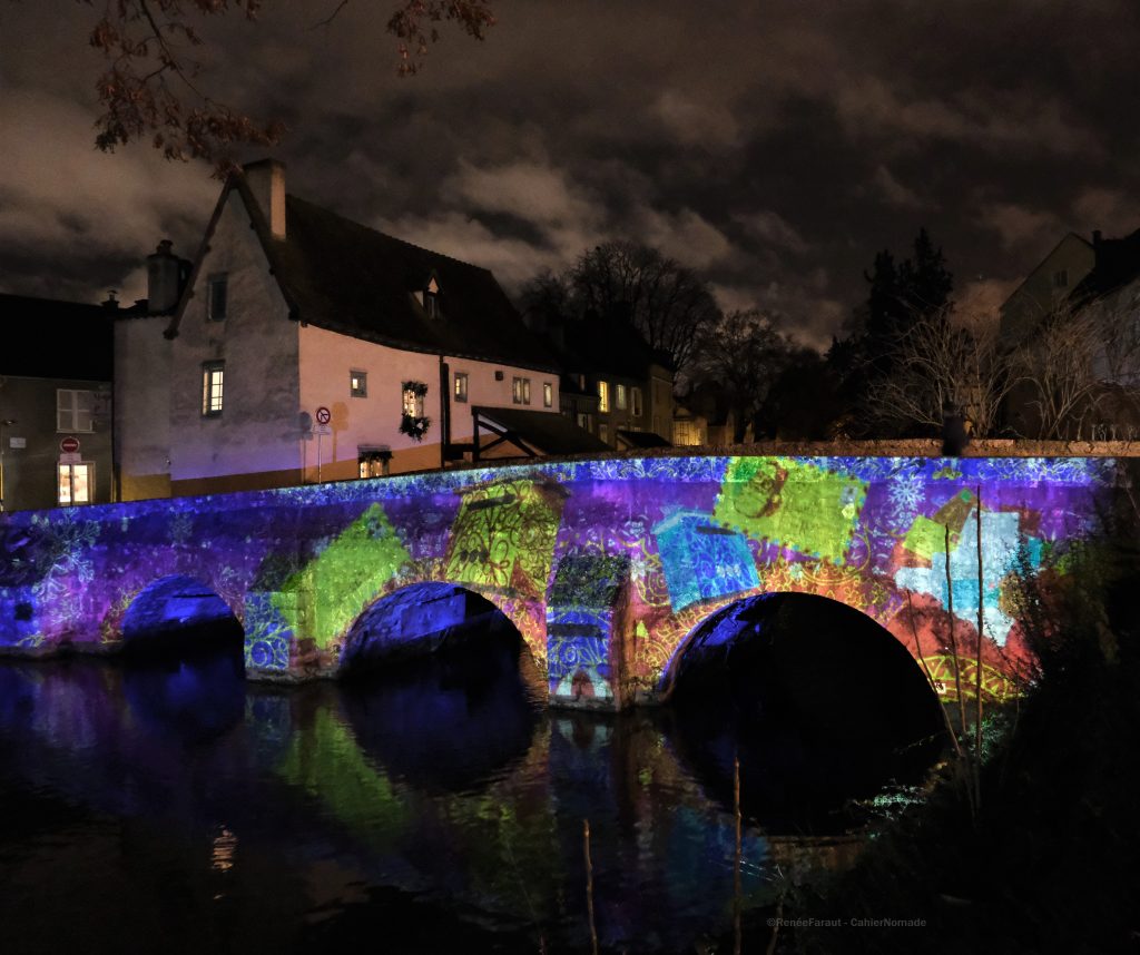 D’avril à janvier, chaque soir, Chartres revêt son habit de lumières, sublimant ses monuments. L’office du tourisme propose une plaquette avec un circuit pour ne rien rater. Le spot le plus beau est celui de la cathédrale, à garder pour la fin du coup. J’ai pour ma part bien aimé les projections sur la collégiale Saint-André et sur les ponts de la ville basse.