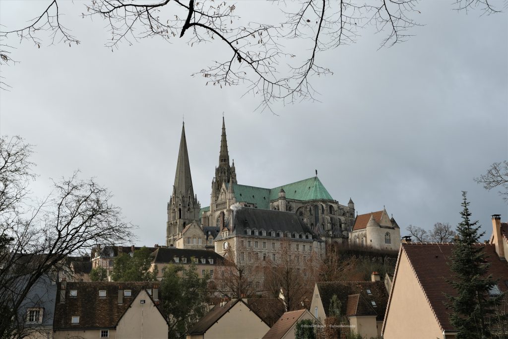 Chartres est connue pour sa cathédrale et notamment pour ses vitraux. C’est véritablement le monument emblématique de la ville. Posée sur une hauteur, on peut voir d’un peu partout sa silhouette élancée composée de deux flèches, hautes de 103 et de 112 mètres. Il est dit qu’elle serait d’ailleurs visible 25 km à la ronde ! La ville s’étend tout autour : la ville haute, la plus récente et la ville basse constituée des quartiers médiévaux situés au bord de l’Eure.