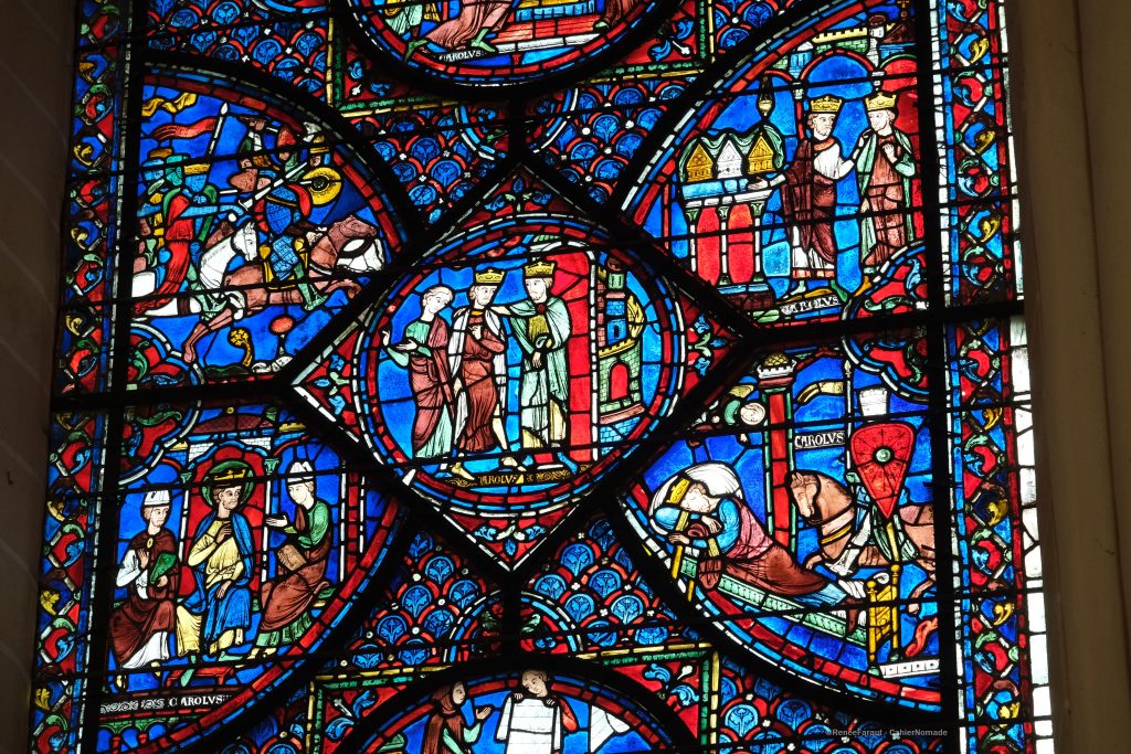 La cathédrale est réputée pour ses vitraux. Et il est vrai qu’ils sont magnifiques. Assurez-vous d’y aller à un moment où la lumière les met en valeur et vous serez subjugué par les couleurs, notamment le bleu, un bleu bien particulier, baptisé le bleu de Chartres, obtenu avec de l’oxyde de cobalt.