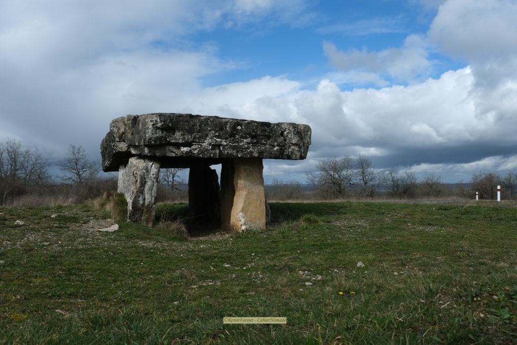 Tout à coup, au milieu d’une intersection, je découvre un imposant dolmen en forme de grande table. Selon la légende, il aurait été édifié par des géants afin d’y sacrifier des jeunes filles. L’une d’elles fut sauvée par Saint-Antonin ce qui provoqua la fureur des géants qui fracassèrent la dalle.