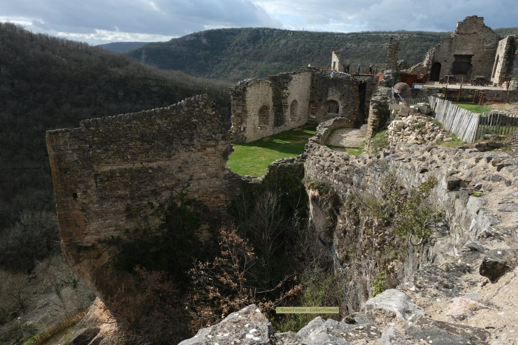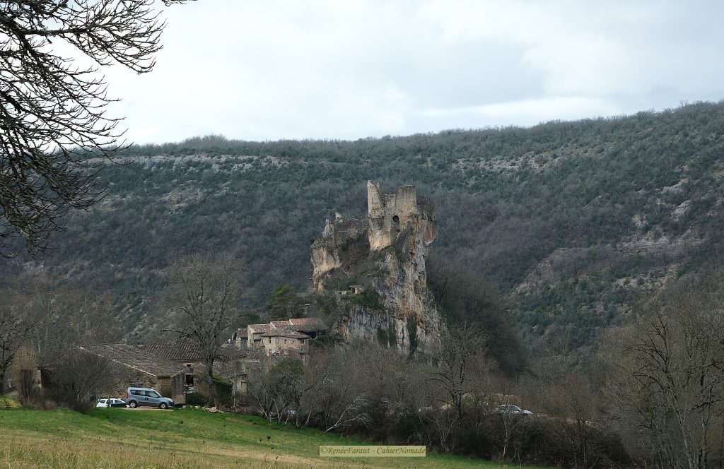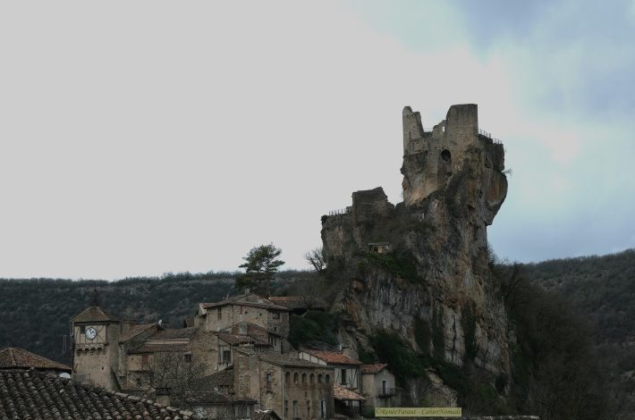 Bonus : Vous cherchez le meilleur point de vue pour voir le château ? Rendez-vous de l’autre côté de l’Aveyron : depuis le village, la D33 passe à côté d’un magnifique pigeonnier (que vous aurez sûrement admiré depuis la forteresse), traverse l’Aveyron puis grimpe à travers la garrigue. Attention à ne pas le rater, il n’est pas indiqué. A un moment, vous verrez un chemin de terre qui part sur la gauche. Laissez la voiture là, le point de vue est juste au début de ce chemin.