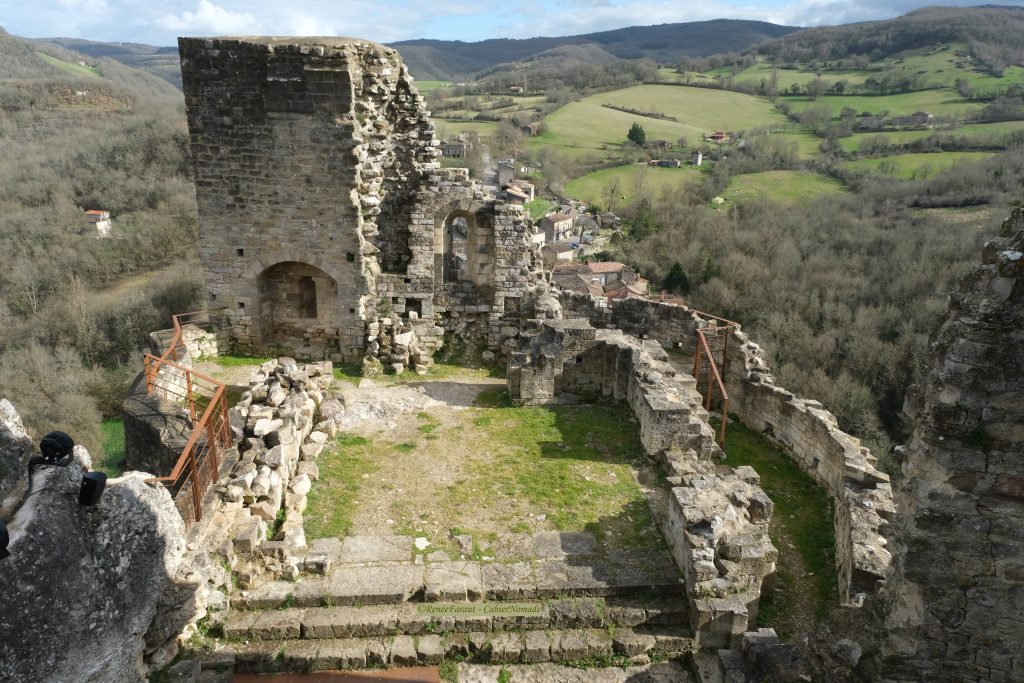 Dans la salle des gardes, on peut voir la trace d’une cheminée. Du haut de la tour ronde, un beau point de vue s’offre à mes yeux sur l’Aveyron , le village de Penne et la forêt de la Grésigne.